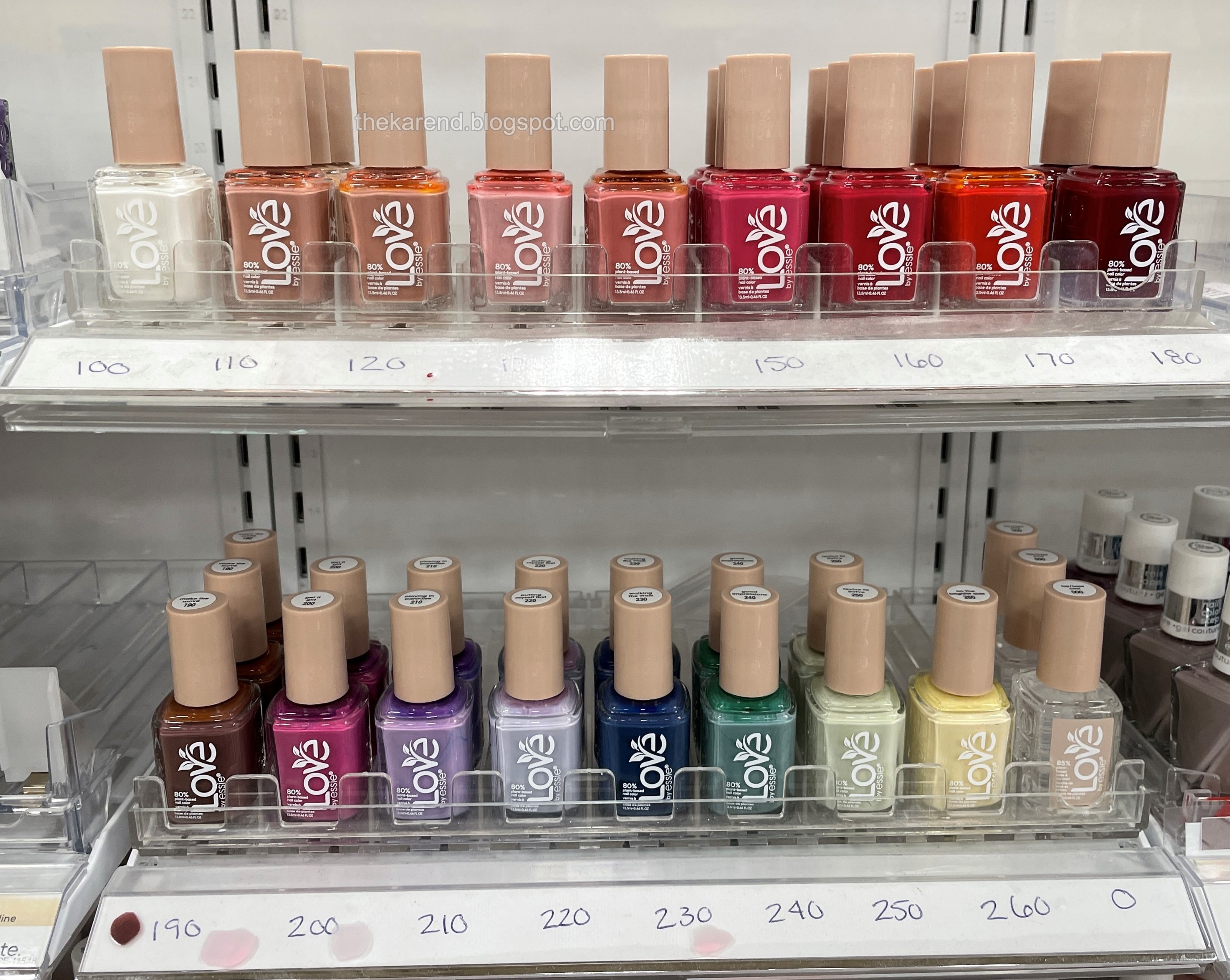 I shared the plant based Essie Love polishes I saw on my England vacation in my last display post. The first (and so far only) time I've seen them at home is at a Fred Meyer, where they hadn't finished putting up the shade labels or price tags yet.