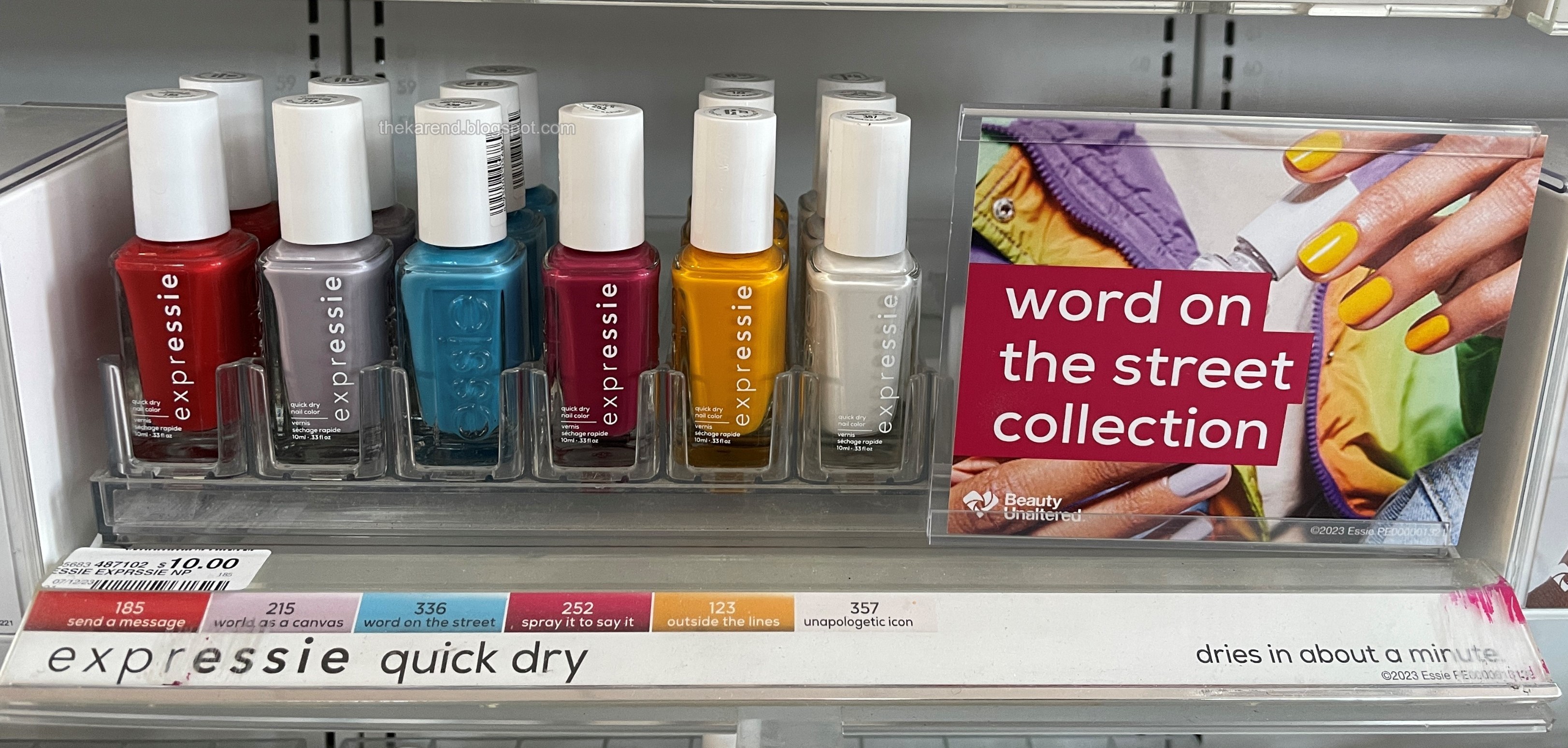 I don't remember seeing the Essie Expressive Word on the Street collection before, though the internet tells me it's been around since at least March of this year, so here is it tucked into the core display wall at a CVS in Michigan. Left to right: Send a Message, World as a Canvas, Word on the Street, Spray It to Say It, Outside the Lines, and Unapologetic Icon.