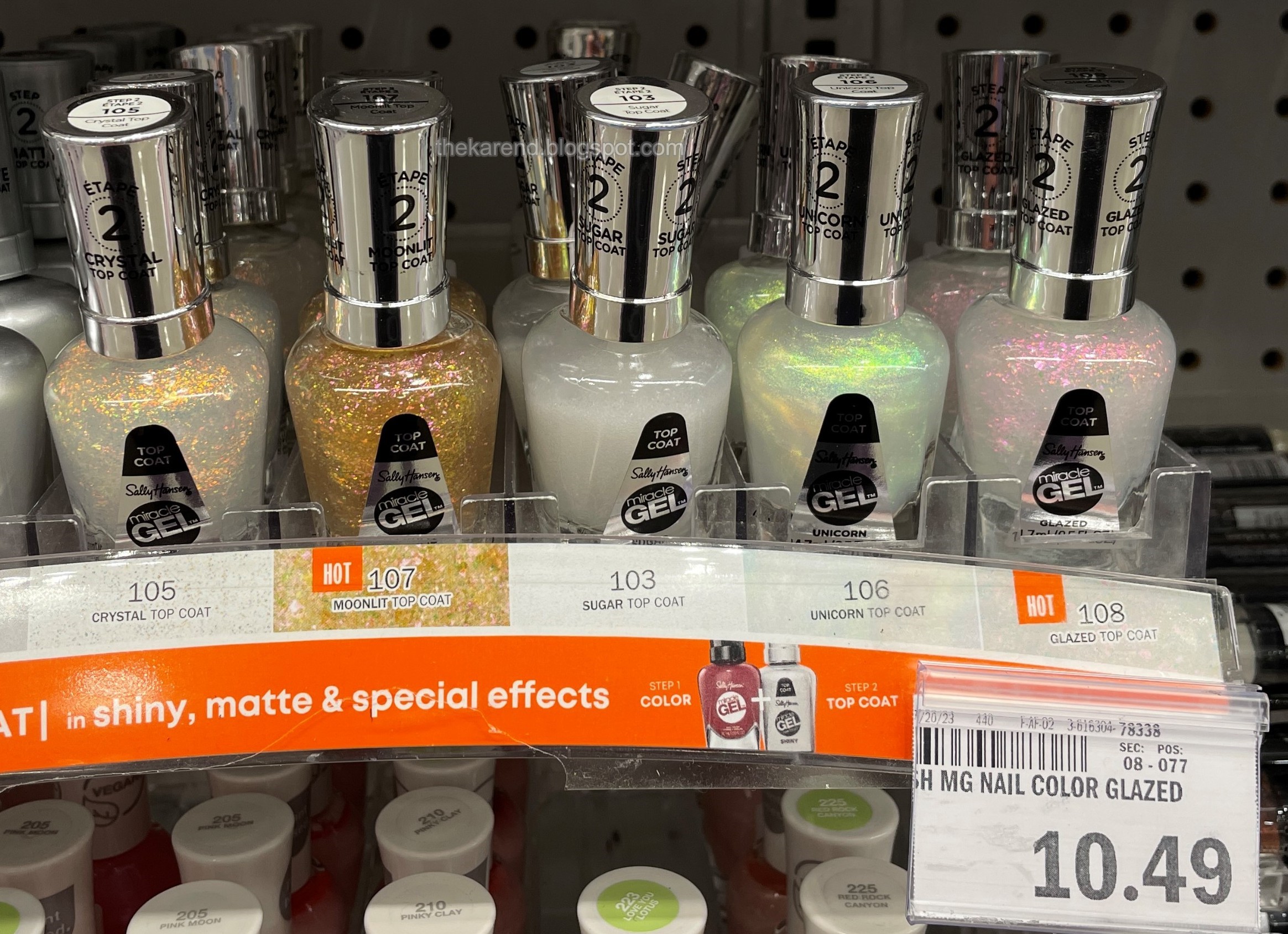 I didn't document the exact shades in the Eerie-sistable display, but I did get a closeup of the Miracle Gel Toppers in the core section at Meijer, since I'd not seen Glazed in person before. Left to right: Crystal, Moonlit, Sugar, Unicorn, and Glazed.