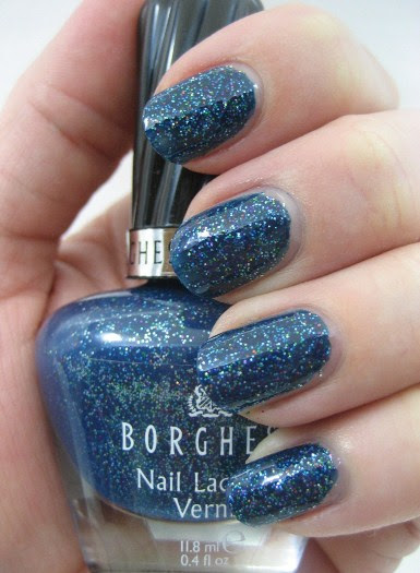 Vignetto Berry has a deep raspberry base with brighter raspberry glitter. Unlike Purple Confetti and Mediterraneo Sea, the glitter is all one color, but since the base is not transparent, it covers the glitter to varying degrees, which lends a very nice sense of depth to this on the nail. Like the others, it's a two coater, and dries matte when left to its own devices.