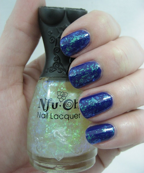 Blue polish and flakies, you can't go wrong with that combination! These flakies are a dream for me. I keep telling myself that one day they will be mine.