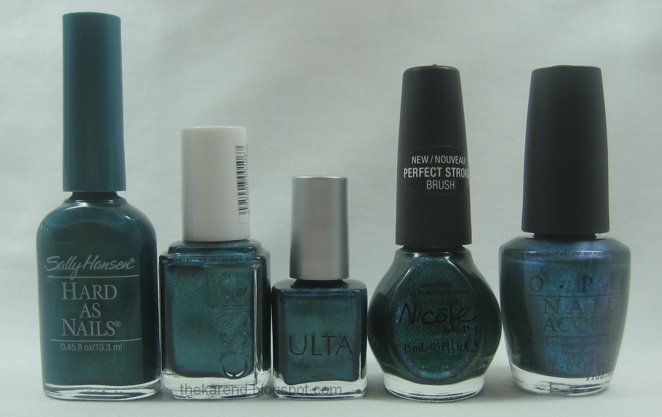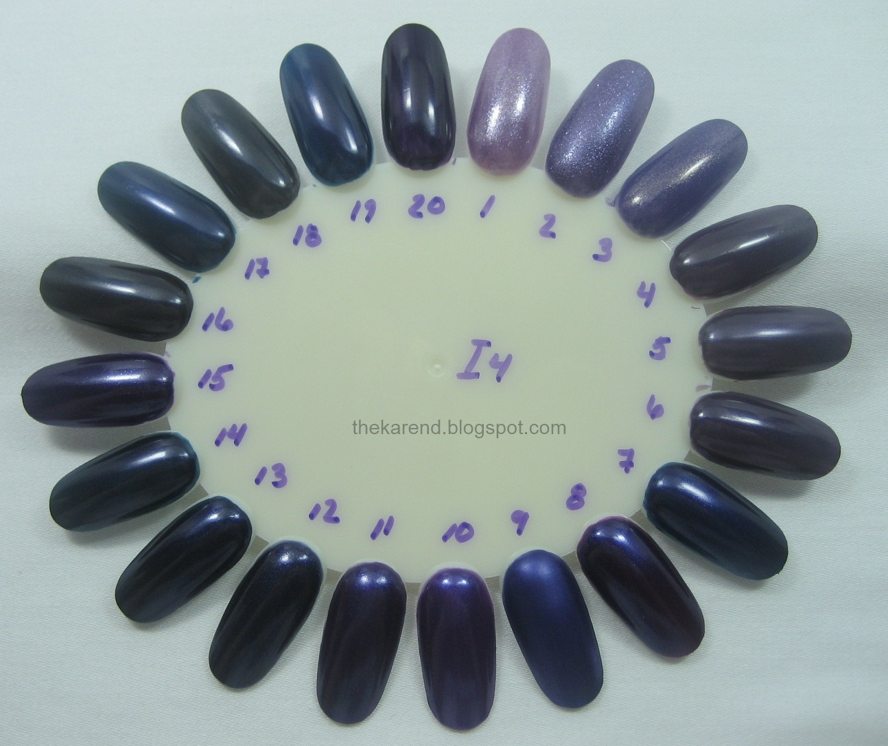 As I mentioned when I shared this display photo I shared last month, every time I came across it, some of the colors were already sold out. A couple weeks agao, I was in a Meijer where they must have put it out late, as there was at least one of each color left, so I was able to reassure myself that I hadn't really missed anything that was new with this display. I did pick up the two I hadn't seen in a Studio M bottle before as well as few others. I'm going to be giving away these colors to one of the commenters on this entry, so keep that in mind as you look at the swatches so you can decide if you want in on the drawing. (The bottles I'm giving away will be the ones I used, so if that squicks you out and you still want to comment, just let me know you don't want in on the giveaway.)