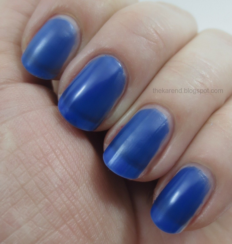 Finally, here's how Bouncer It's Me stacks up against two popular blue cremes from recent years. Left to right below: RBL IKB2012 (2 coats), Essie Bouncer It's Me (3), Revlon Top Speed Royal (2).