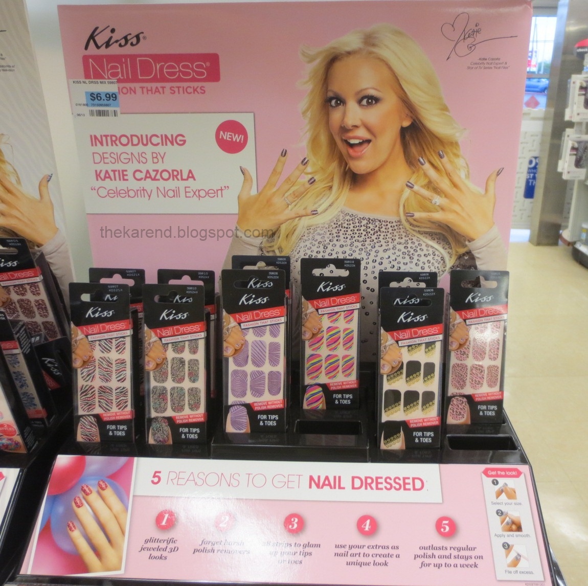 Rite Aid also had some new Katie Cazorla designs of Kiss Nail Dress stickers. If these have names, they're not printed anywhere obvious on the packaging. There's a red/white/black zebra design highlighted with silver dots, a black/white butterfly lace with teal/pink/lilac accent colors, lilac/purple geometric lines, bright curvy diagonal lines, black/clear with gold lace trim, and brown/pink/white cheetah stripes.