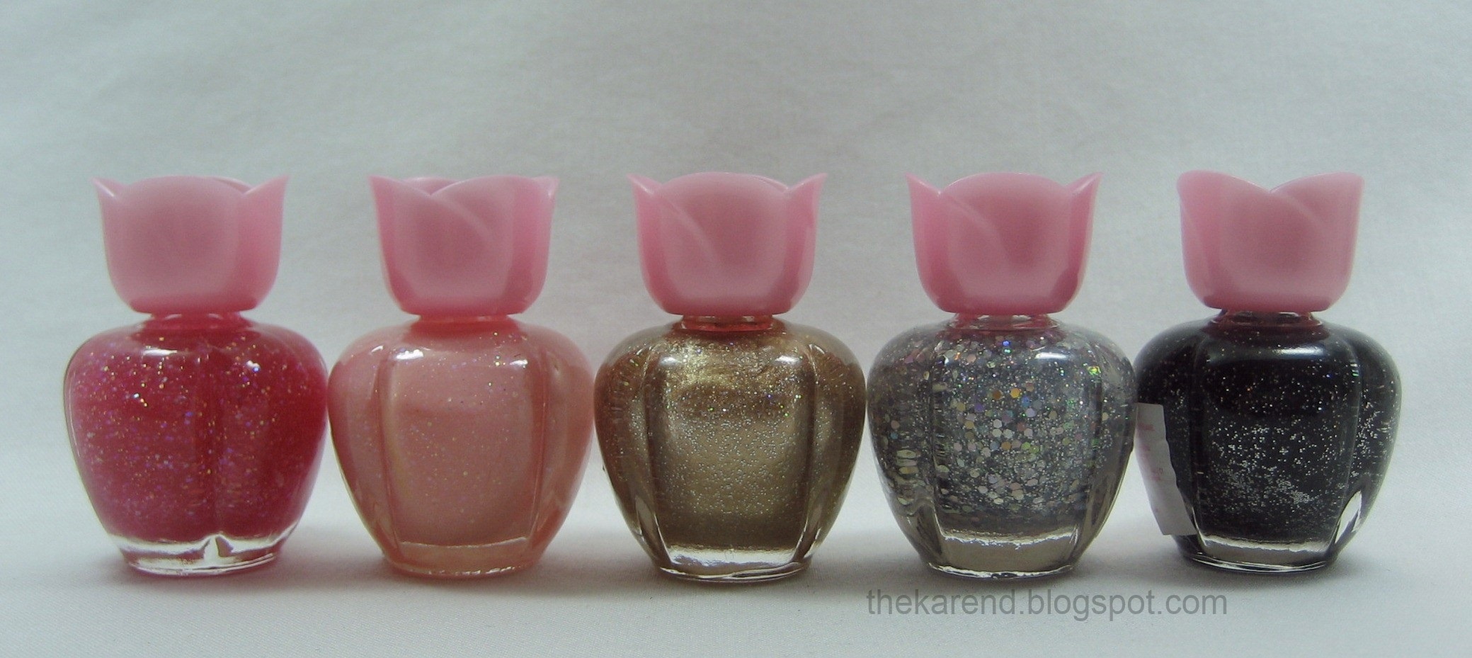 ReplyDeleteI love the tulip shape top bottles and the ones with the rose shapes on them. The glitters are cute too :)