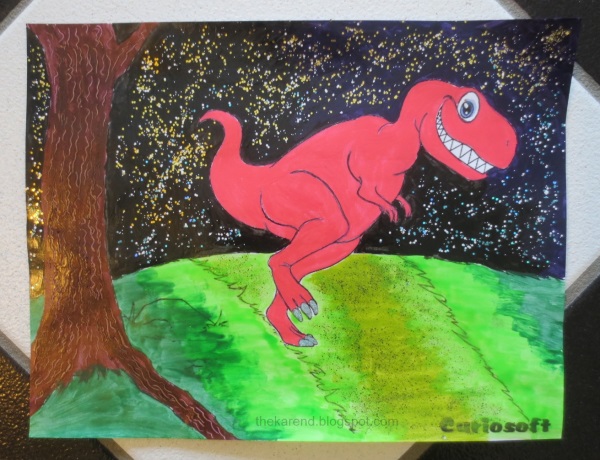 ReplyDeleteYAY congrats Karen, the dino is so cheeky looking and I love the glitter back ground - it must have been fun :)