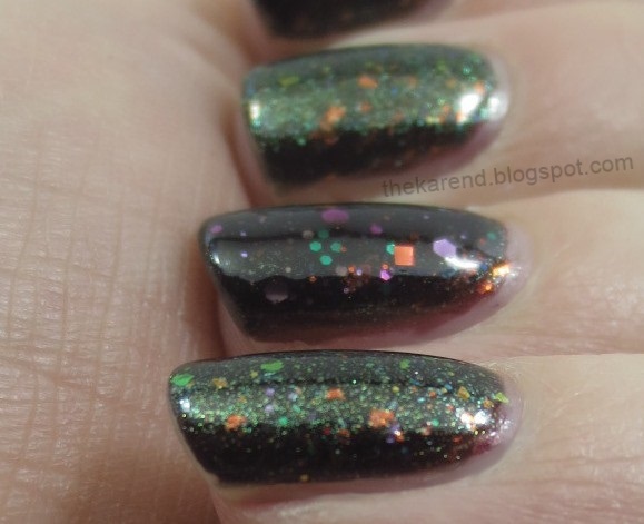 A couple days later, I did set up my lightbox in my hotel room, so here's a good look at Coronation at Westminster, which has a sheer black base packed with gold shimmer and multi colored small glitter.