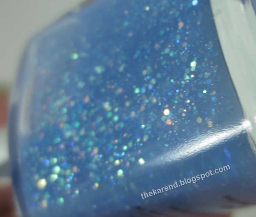 Pure Ice Sparkling Seas has iridescent glitter in a mix of sizes in a sheer pastel blue base.