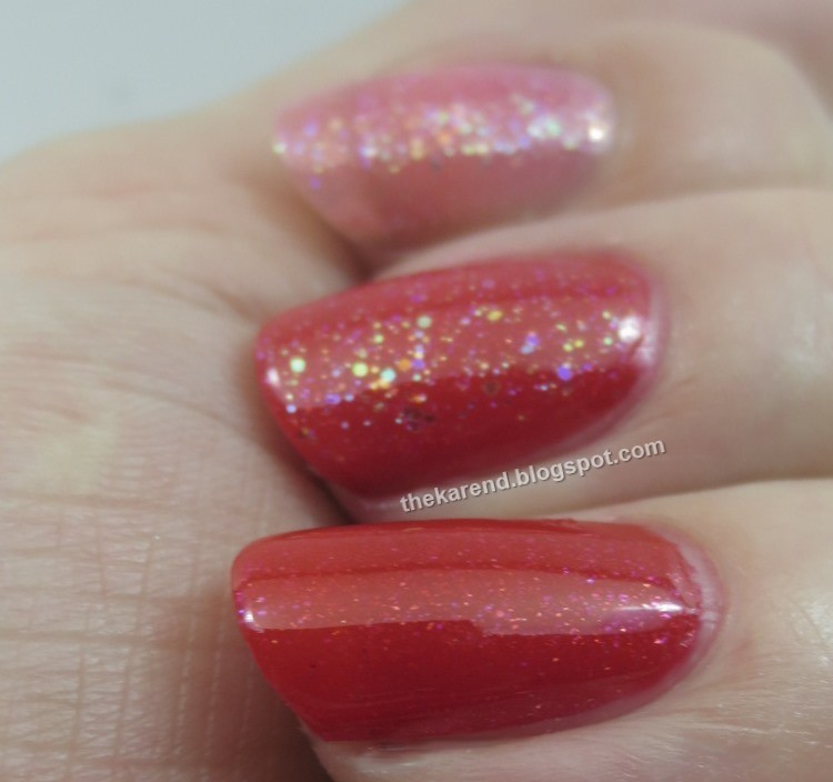 Sheer pink looks okay to my eyes, so I might wear Mer-magical by itself. It does look good over the red, though, and the red looks good by itself, too, with the tri-colored shimmer.
