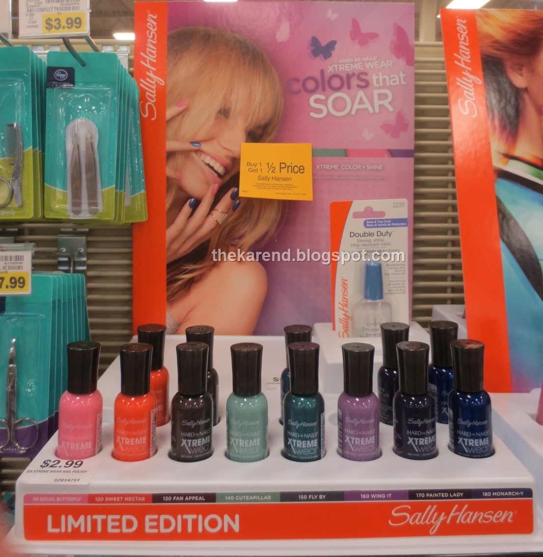 Sally Hansen keeps pumping out new colors. The Colors That Soar display has eight limited edition Xtreme Wear shades: Social Butterfly, Sweet Nectar, Fan Appeal, Cuteapillar, Fly By, Wing It, Painted Lady, and Monarch-y. I saw this first at Fred Meyer on my travels and later back here at home in Michigan at a CVS.