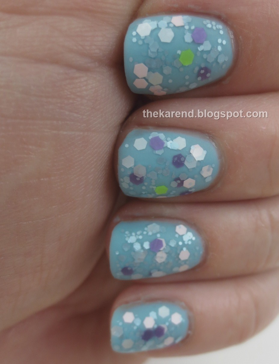 Glass Slipper is the turquoise blue sister, with shimmer similar the Enchanted and Hakuna Matata, perhaps even a bit more subtle. As with the others, I used three coats of this one.