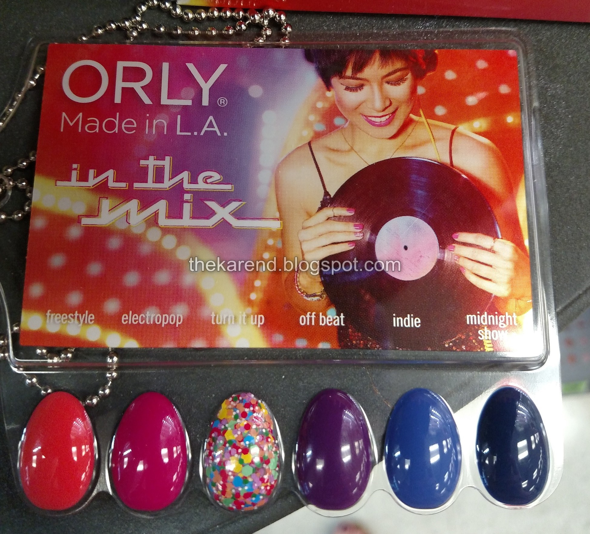 I saw Orly In the Mix at Sally Beauty. Six shades here, best viewed on the swatch rectangle, as the display hides half of them: Freestyle, Electropop, Turn It Up, Off Beat, Indie, Midnight Show.