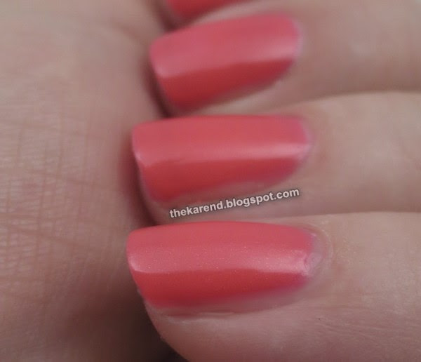 Initially I passed on it, because I thought it was just another pink creme, and not even the hot pink shade I associate with Barbie. Maybe it had been at one time, though; when I pulled out a bottle in front out to see the name on the bottom, I noticed the color had changed on the side the sun was hitting. I dismissed it as something I didn't need, and never shared the display photo since there were so many others around at the time that were more interesting.
