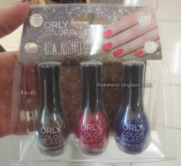 There were two trios of Orly Color Blast at Kohls that I hadn't seen before: Hollywood Hills (shades are Selfie Time, Happy Hour, and Dress Up) and L.A. Nightlife (Appearance is Everything, Filtered, Girls Night). The backs of these say the shades are new; not clear if they're also limited edition.