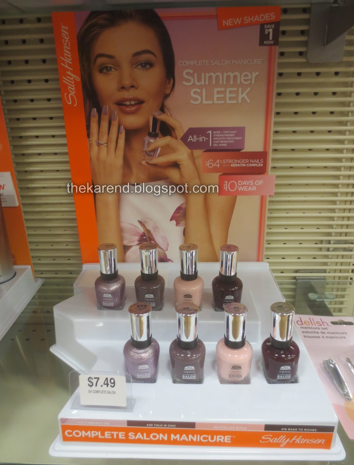 The most recent Sally Hansen I've seen is the Summer Sleek display with new shades of Complete Salon Manicure: A Perfect Tin, Talk is Chic, Stellar Style, and Rags to Riches.