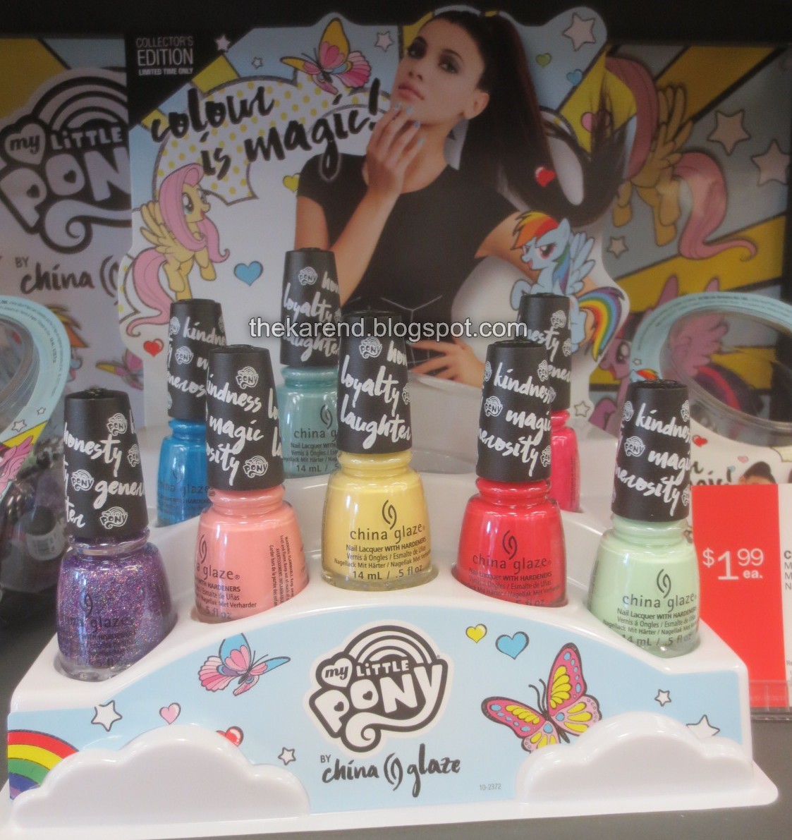 Wrapping up China Glaze news, Sally Beauty had a much more easy to parse China Glaze display for the My Little Pony collection. Front row: I Just Canterlot, Sweet as Pinkie Pie, Kill 'em with Kindness, Applejack of My Eye, Cutie Mark the Spot. Back row: Too Busy Being Awesome, One Polished Pony, She's a Mane-iac.