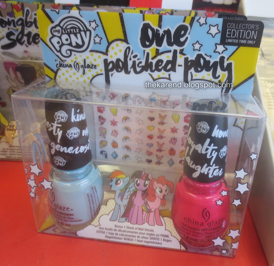 Up by the register, they had two duo kits with My Little Pony colors. One Polished Pony has that shade and She's a Mane-iac plus cute decals. Songbird Serenade had two shades not in the other display, Best Ponies Forever and Songbird Serenade, and two rings.