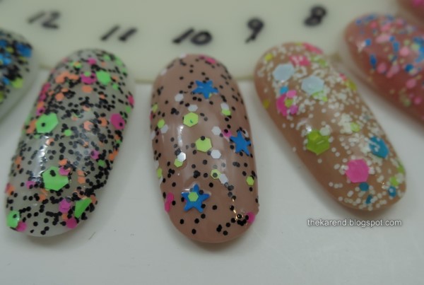 8. Studio M Surprise Party (2 over tan base) [had to fish for larger glitters; pink glitter has bled into the base so no longer as vibrant as when it was new]