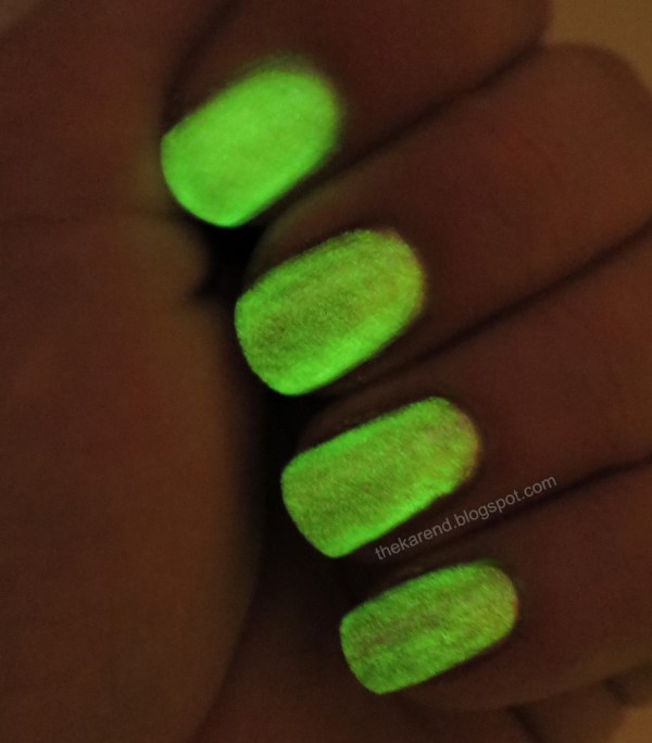 Glowing Night was up next, and it has a surprise: shimmer! That's unusual for a glow in the dark polish, at least in my collection.