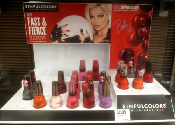 Fred Meyer also had a display for SinfulColors Fast & Fierce. This has limited edition "cherry-inspired shades by Bebe Rexha" in the Quick Bliss line. This particular display was a bit of a mess, but it did have one of the two LE colors, Speedster, which is the red with the silver to black gradient cap on the right side. The other LE that should be here is Vvvroom, a lilac shimmer. (There's also Fast Ride, a purple shimmer, that came out at the same time, but that is an online exclusive available only in sets with the three new ones and three previously released Quick Bliss shades.)