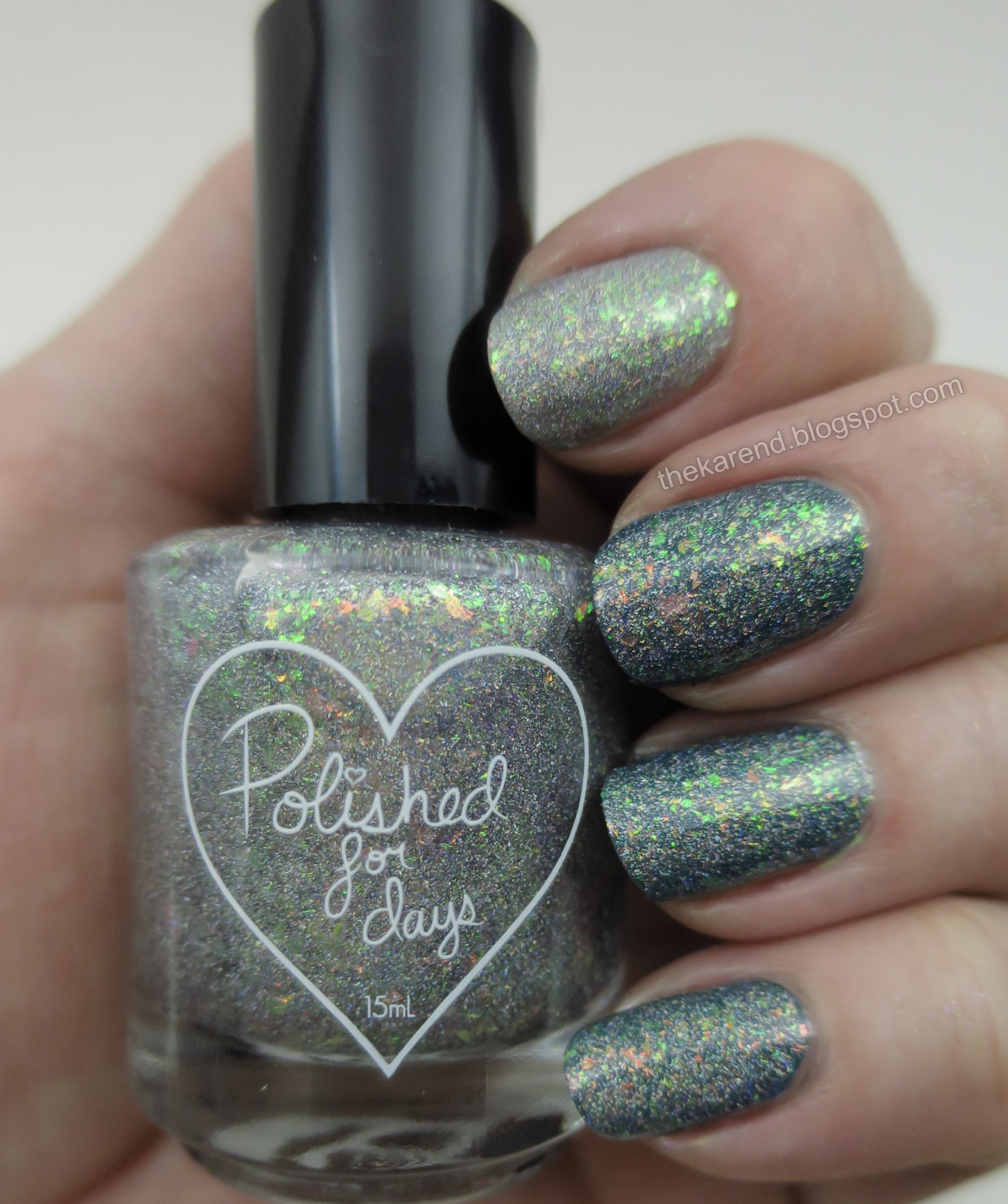 It was dark out when I swatched Birch, so I don't know how it looks in the sun. I do know it looks fabulous in a different way under the warm direct light of my desk lamp. The larger shifty flakes yield center stage to the tiny holo ones but don't disappear entirely, still hanging around to add interest.