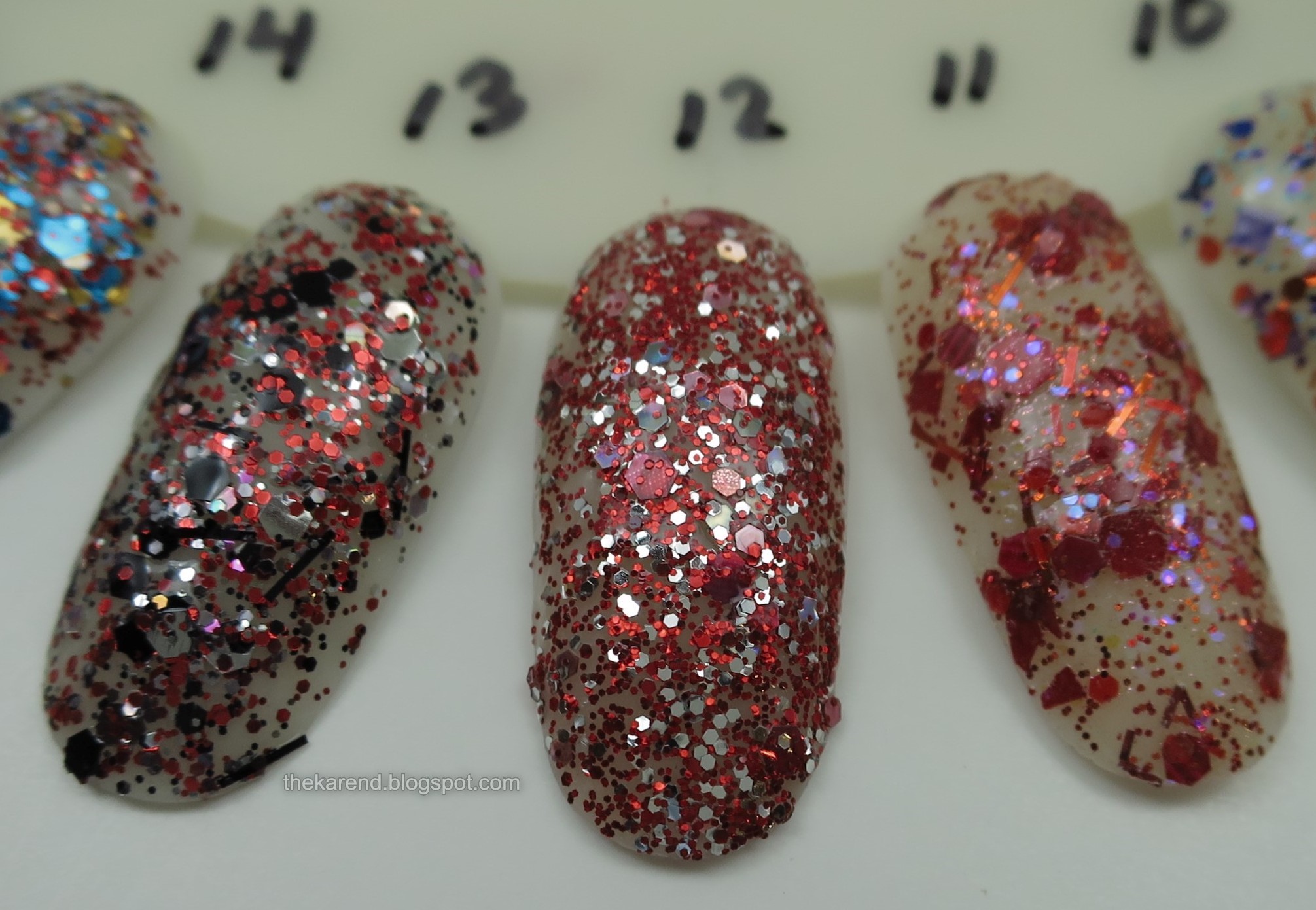 Today for Nail Wheel Wednesday I've got a whole bunch of glitters from CrowsToes Nail Color, all from back in what I think of as the golden age of indies when there was lots of glitter around. These particular polishes are from the early 2010s if I recall correctly; I sort of lost touch with the brand around 2013 or so (they shut down entirely in 2018). I know lots of folks think now is the golden age of indies, but for me it's too much now ... too many brands to keep track of, too many boxes and collabs and such that I always feel like I'm missing something, too hard to know who's a crap person that I don't want to spend money with. I'm still buying indies, of course, mostly from brands where I've met the maker or I have friends who have, but it doesn't feel quite as fun as it did back when the indie world was smaller. Of course, nothing feels quite as fun these days, what with the pandemic and political climate in my country.