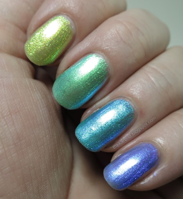 Like Stay, this looked great in regular room light; it made me think this was a manicure a mermaid would wear.