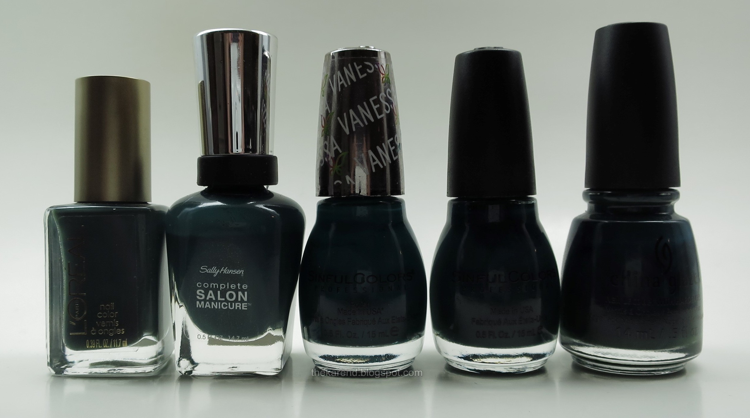When the shades are as dark as the ones featured this Nail Wheel Wednesday, it almost doesn't matter if they're green or blue green or anything else. Many fall into the "may as well be black" area.