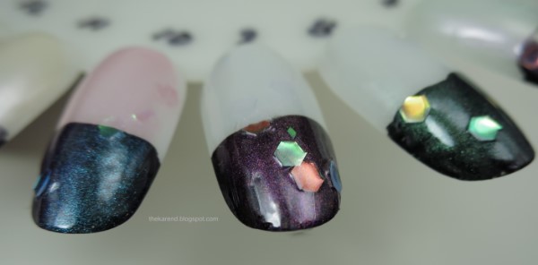9. Sally Hansen Pearl Crush Shell & Tell (2 over half black base) [had to fish for the glitter]