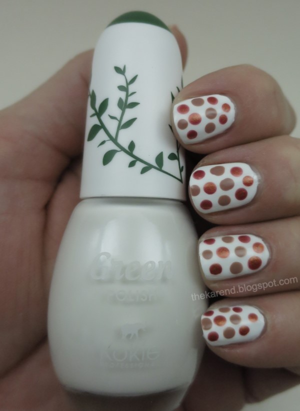 Kokie Green nail polish Moonbeam with dots of Tan Line and Coffee Break