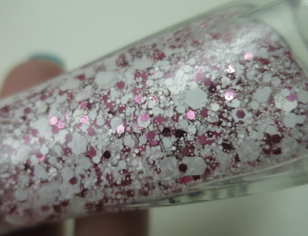Sparkly Wild Berry is a topper with pink metallic and white matte hex glitters in various sizes.