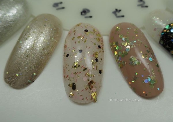 15. Sally Hansen Complete Salon Miracle Bride n' Joy (2 over half black base) [this has deteriorated in storage; it was a much brighter pink in the display in 2015 and the glitter seems not right either]