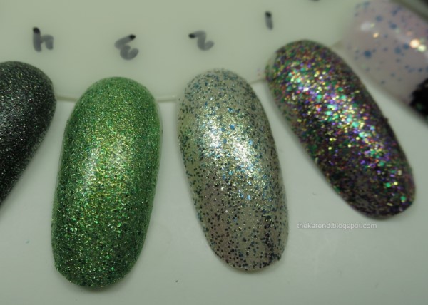 (all have clear topcoat in addition to glitter coats noted below) 1. China Glaze Glitter All the Way (3 coats)